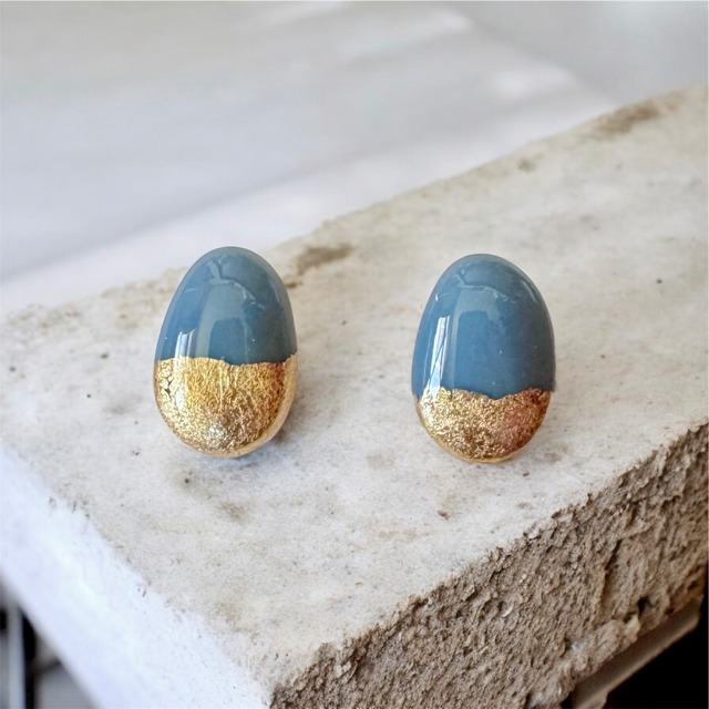 「日常に、心落ち着く景色を纏う贅沢を。」 どこまでも続く、穏やかで神秘的なブルーグレーの海。 その先に霞んで見える、美しい山のシルエット。 時間とともに表情を変えながらも、いつもそこにある 豊かな海と空の情景を一粒のピアス(イヤリング)に閉じ込めました。 波打ち際を思わせる金箔の輝きは、 水面に反射する光であり、この海が育む「豊かな命」の象徴でもあります。 落ち着いた色合いの中に宿るゴールドの華やぎが、 横顔に、知性と芯のある美しさを添えてくれます。 派手ではないけれど、確かな存在感。 Pim_a(ピムエー)が提案する、風景を纏うアクセサリーです。 【作家としてのこだわり】 • 空と海が溶け合う「ブルーグレー」 朝から昼、そして夕暮れへ。どんな光の下でも美しく映える、絶妙なニュアンスカラーにこだわりました。レジン特有の艶やかな質感が、奥行きのある色合いを引き立てます。 • ピンセットで描く、金箔の意匠 一つひとつピンセットを使い、手作業で金箔をあしらっています。波の煌めきや豊かな海の恵みをイメージし、光の角度によって異なる表情を見せるよう丁寧に配置しました。 • 程よいサイズ感と軽やかさ 縦 約1.5cmの、存在感がありつつも上品に収まるボリューム。レジンならではの軽やかさで、耳への負担を気にせず、一日中「お洒落」を愉しめます。 【オススメのスタイリング】 • 白シャツやリネンなど、クリーンな装いに 自然光に映えるブルーグレーは、清潔感のあるスタイルにぴったり。 シンプルながらも、金箔の輝きが洗練されたアクセントになります。 • ネイビーやグレーの同系色コーデに ワントーンでまとめることで、より都会的で落ち着いた印象に。 質感の異なるゴールドの煌めきが、装いに奥行きと遊び心をプラスします。 • カジュアルなデニムスタイルに、上質な艶を Tシャツやデニムといったラフな格好にも。 凛とした佇まいのピアスが、大人の女性らしい品と落ち着きを添えてくれます。 ♦商品詳細 • シリーズ: • 素材: レジン(樹脂)、金箔 • 金具: サージカルステンレス316L(アレルギー対応) • サイズ: 縦 約1.5cm ♦ご購入時の注意点 • 一つひとつ手作りのため、金箔の入り方や色味の濃度にはわずかな個体差がございます。ハンドメイドならではの表情をお愉しみください。 • 丁寧な梱包を心がけ、大切にお届けいたします。 【2月10日 販売開始】 遠くの景色に想いを馳せるような、穏やかな時間が流れますように。 あなたの毎日に寄り添う、特別なお気に入りになりますように。
