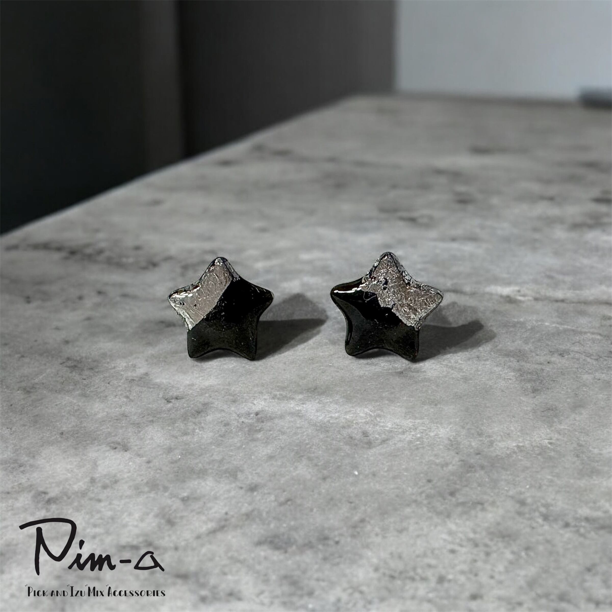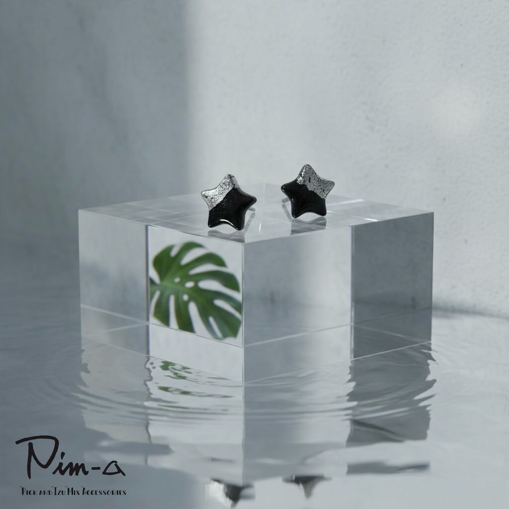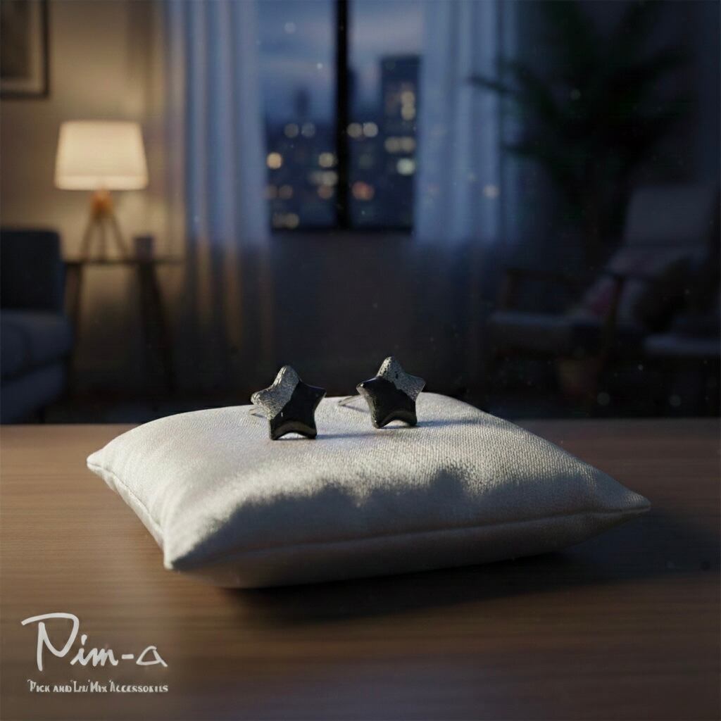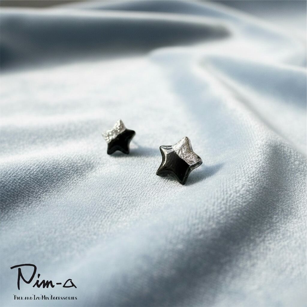 ちびシリーズ -シルバー×ブラックの星- ピアス / イヤリング(サージカルステンレス316L)