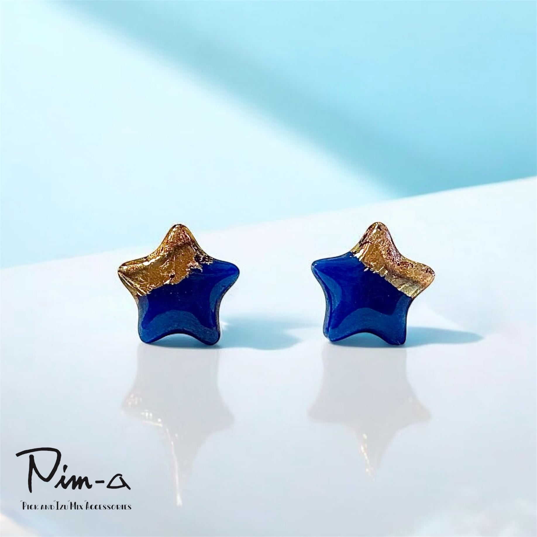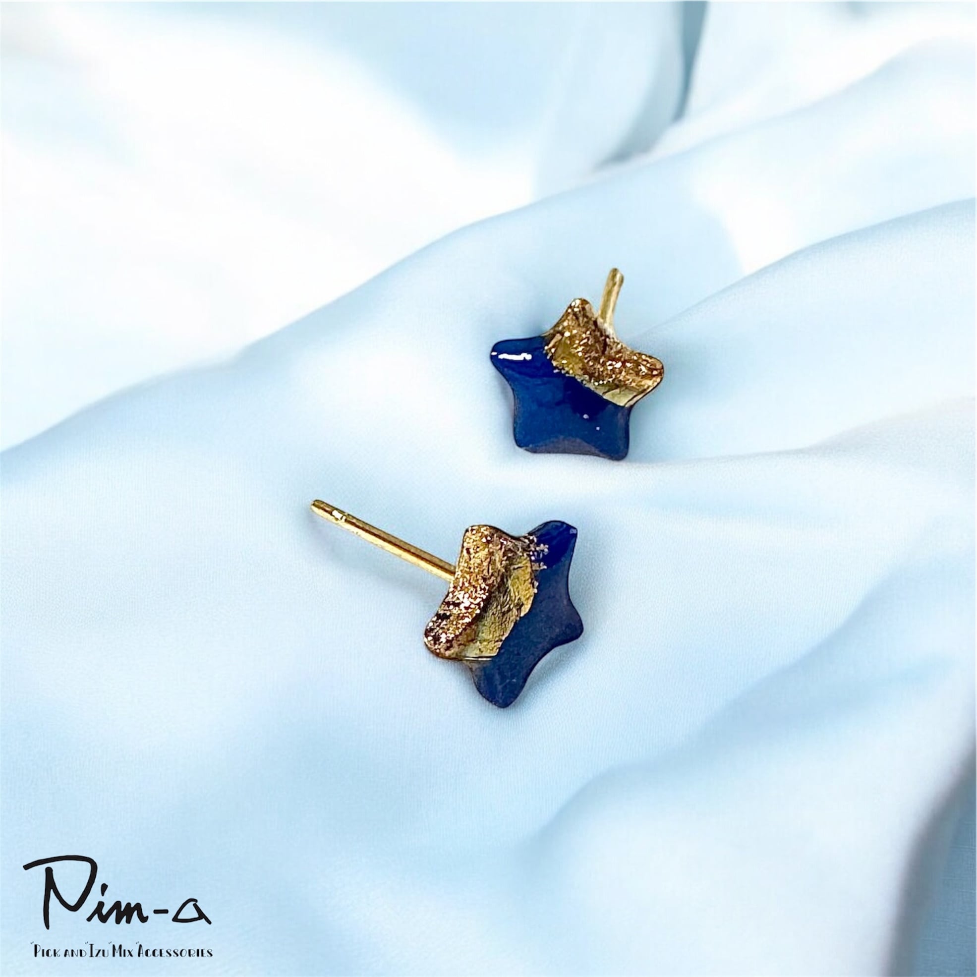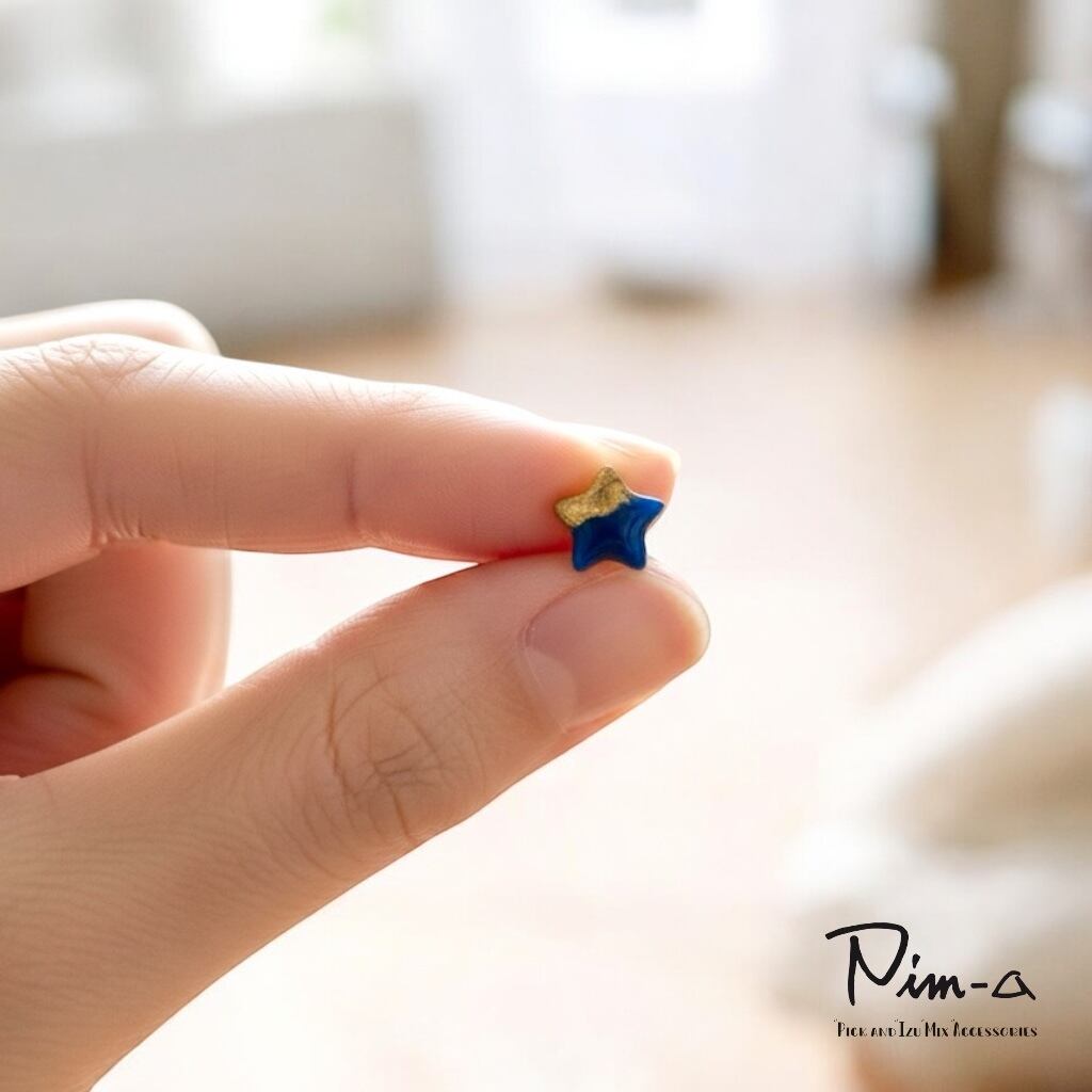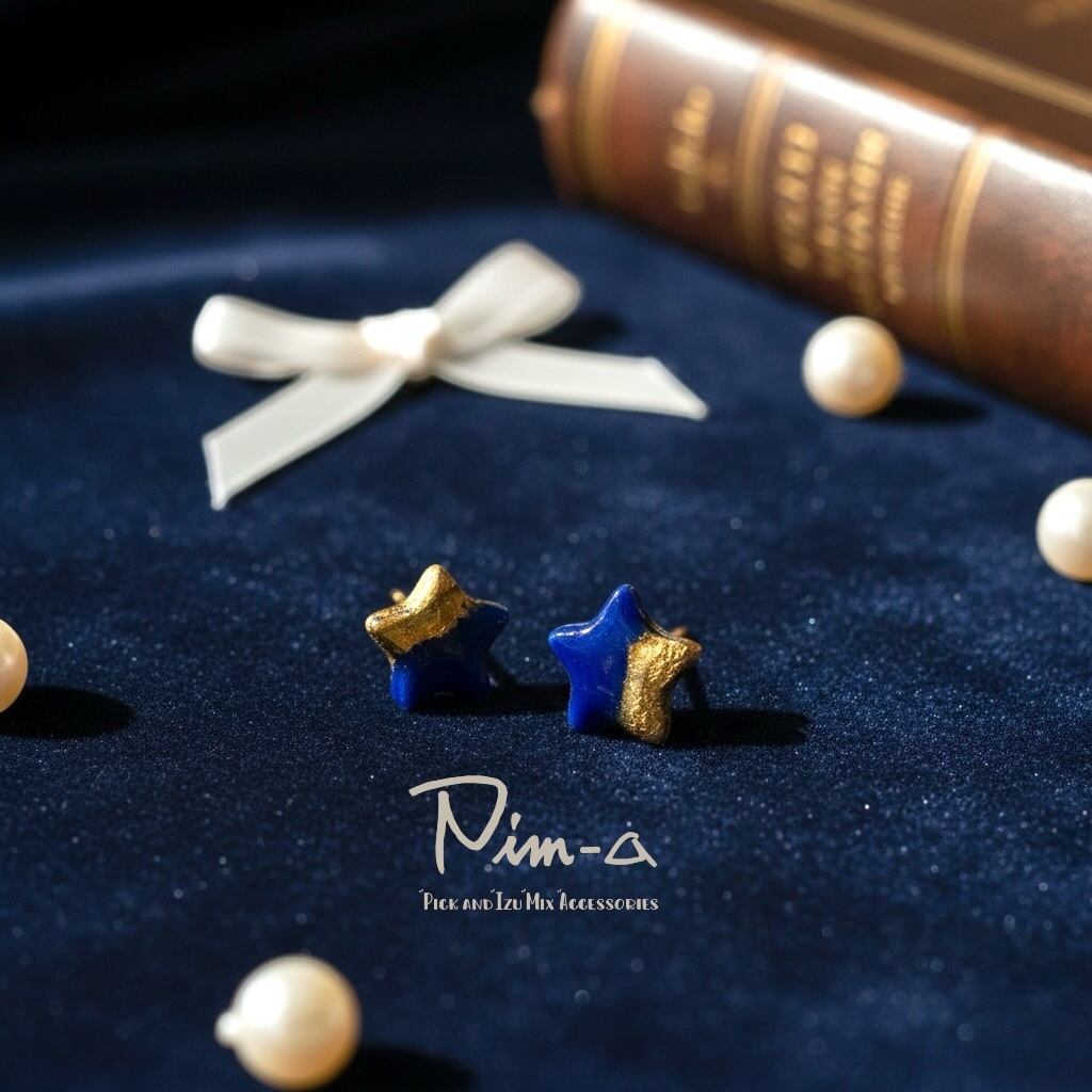 ちびシリーズ -ゴールド×ダークブルーの星- ピアス / イヤリング(サージカルステンレス316L)