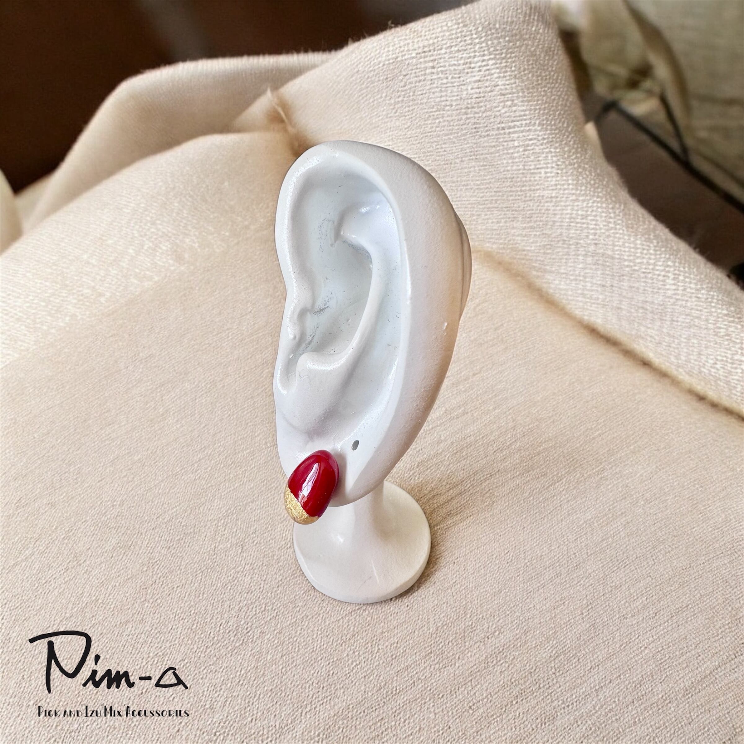 鮮やかな朱色のピアス(イヤリング)に託しました。