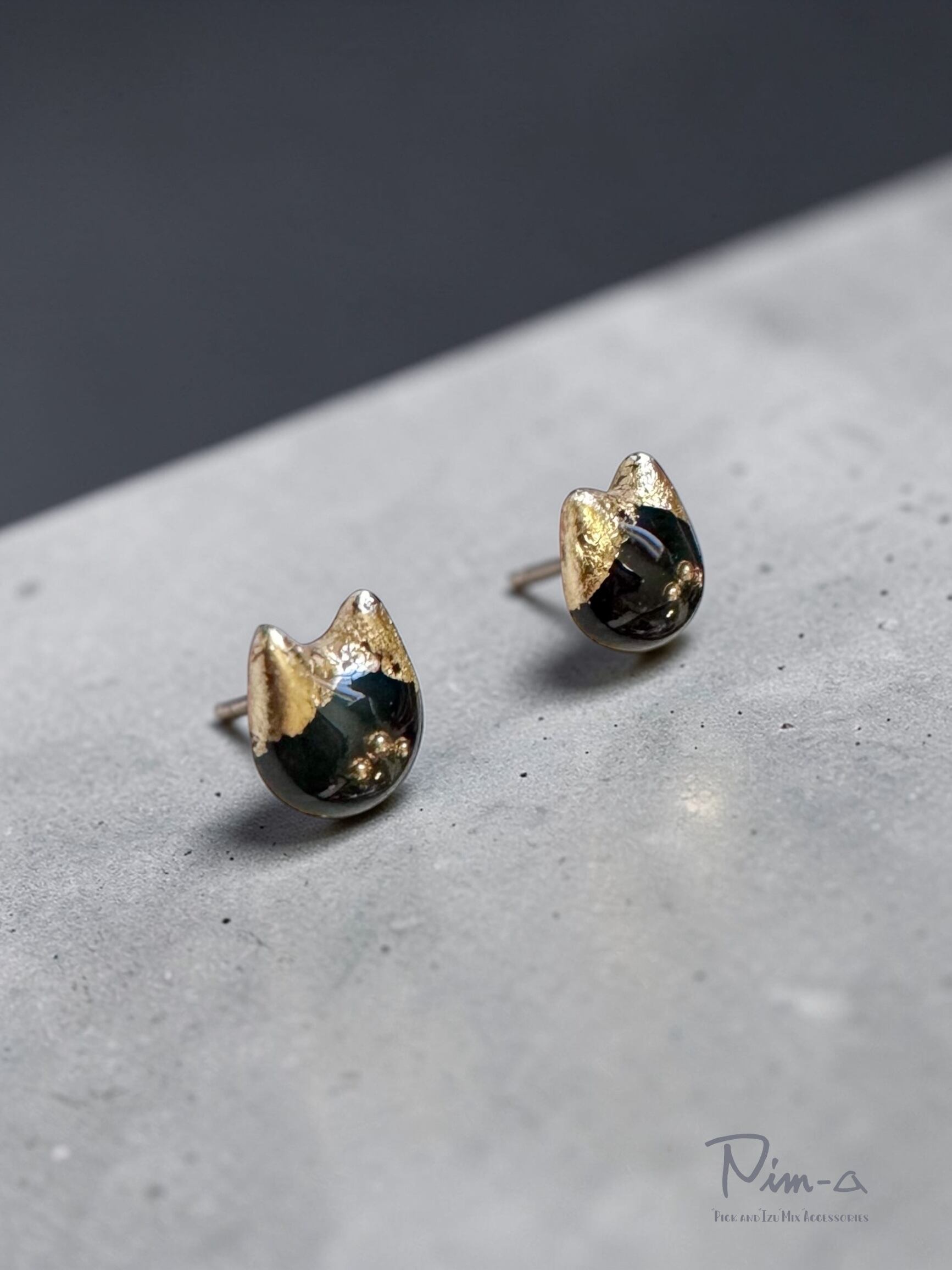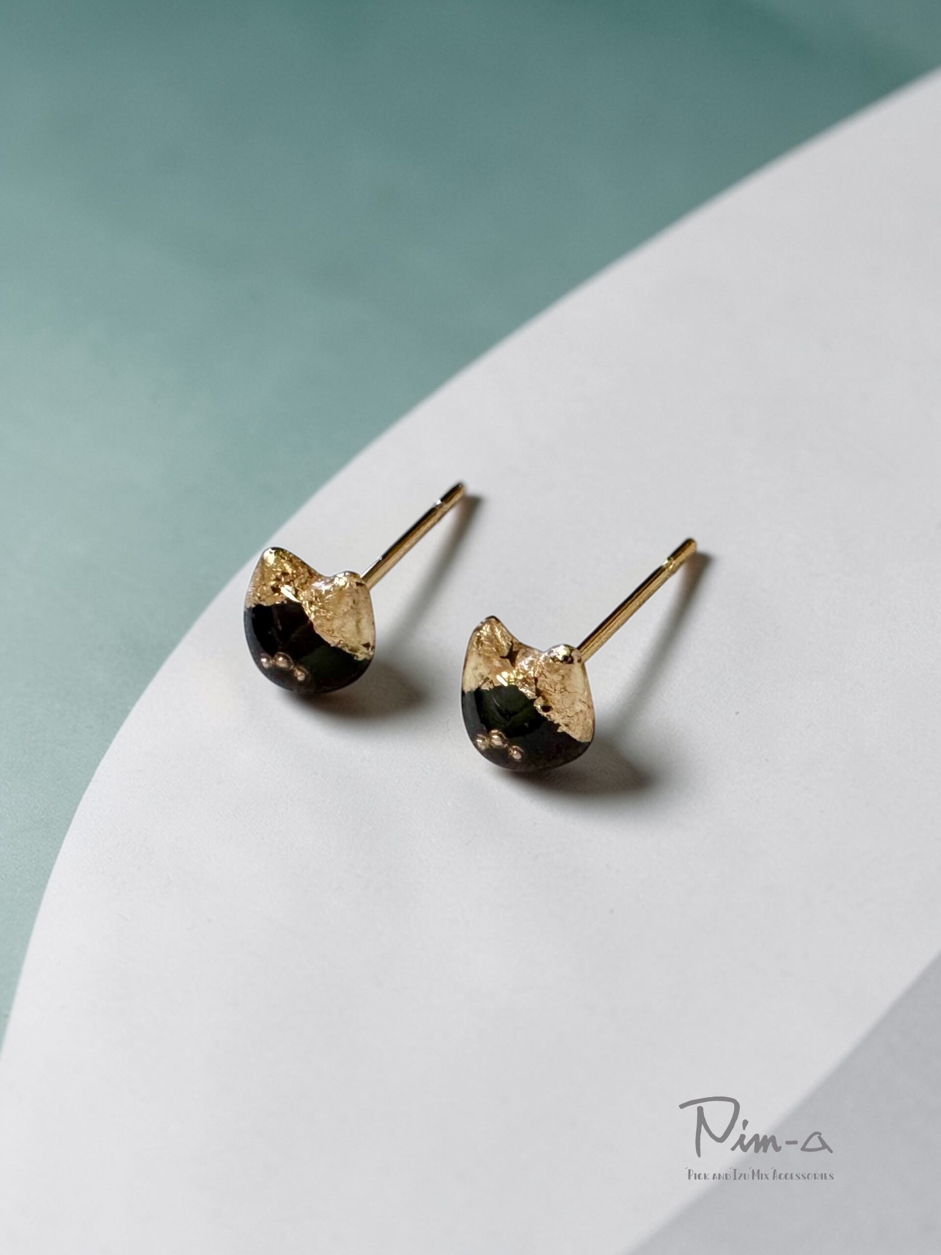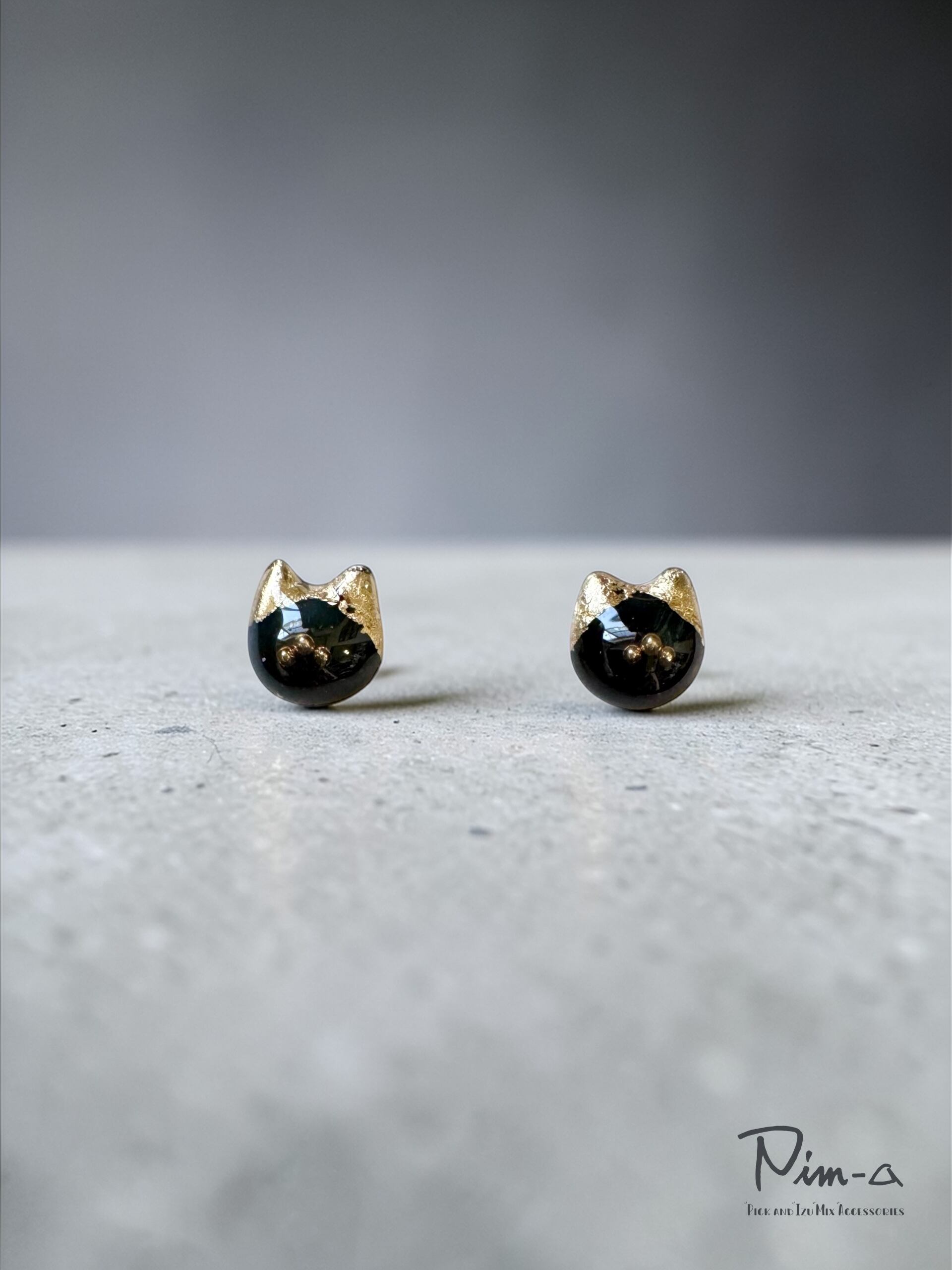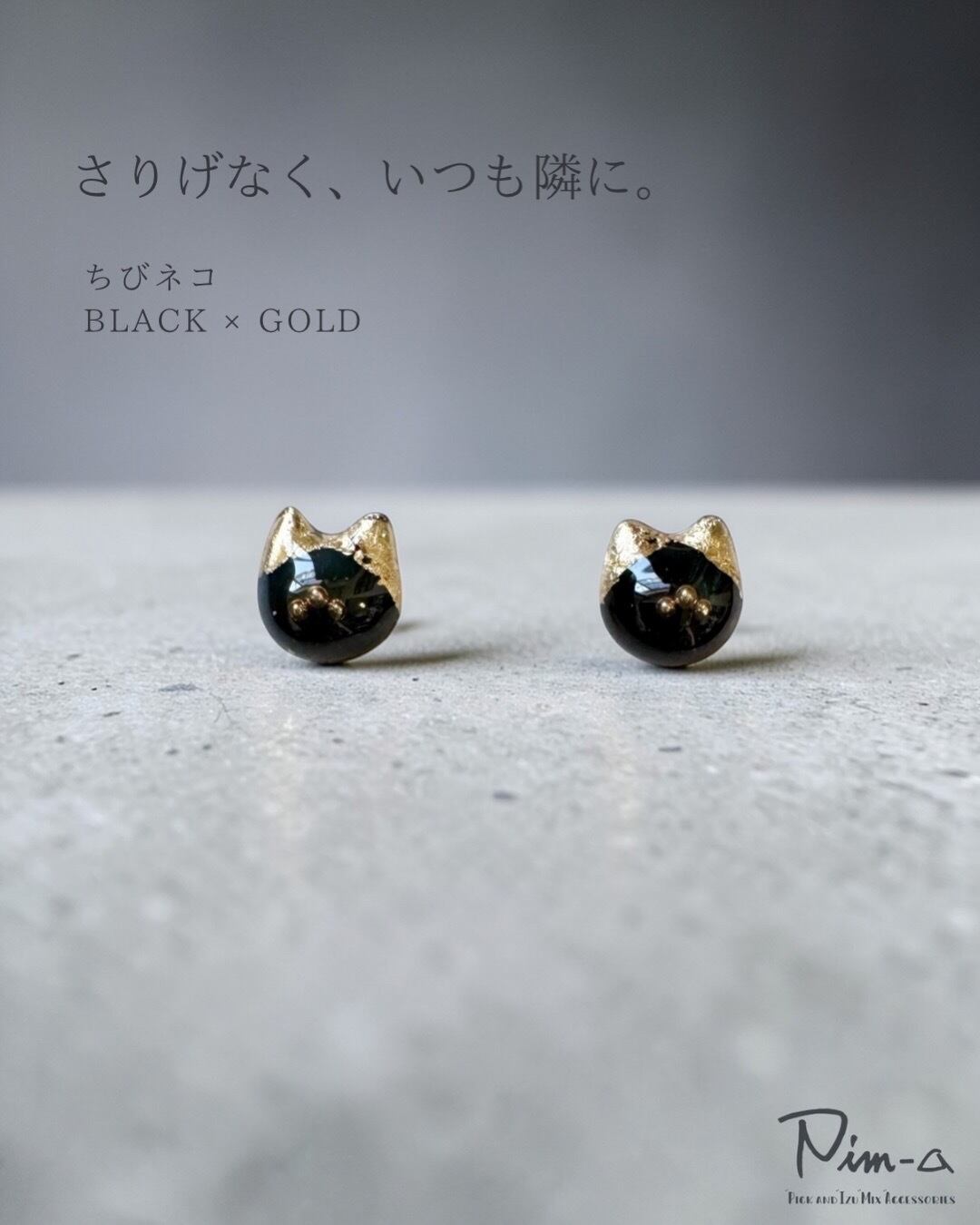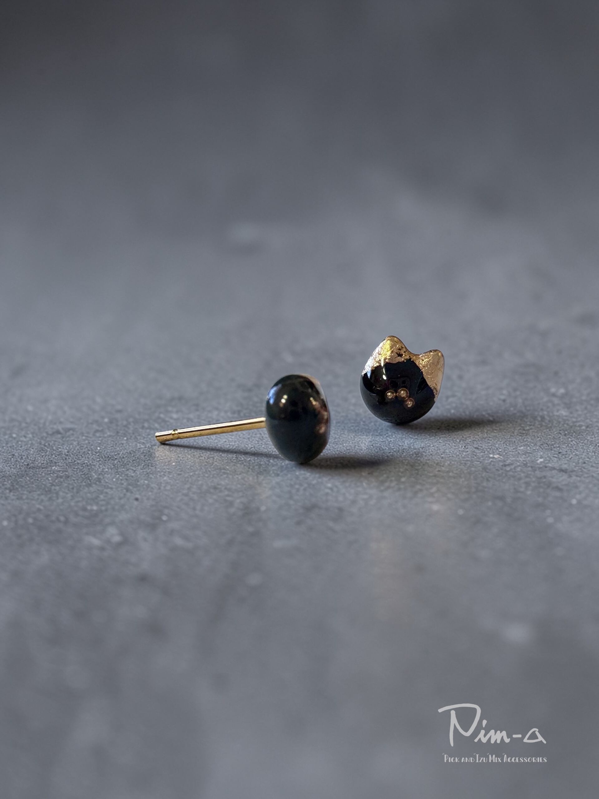 ちびシリーズ -ゴールド×ブラックのネコ- ピアス / イヤリング(サージカルステンレス316L)