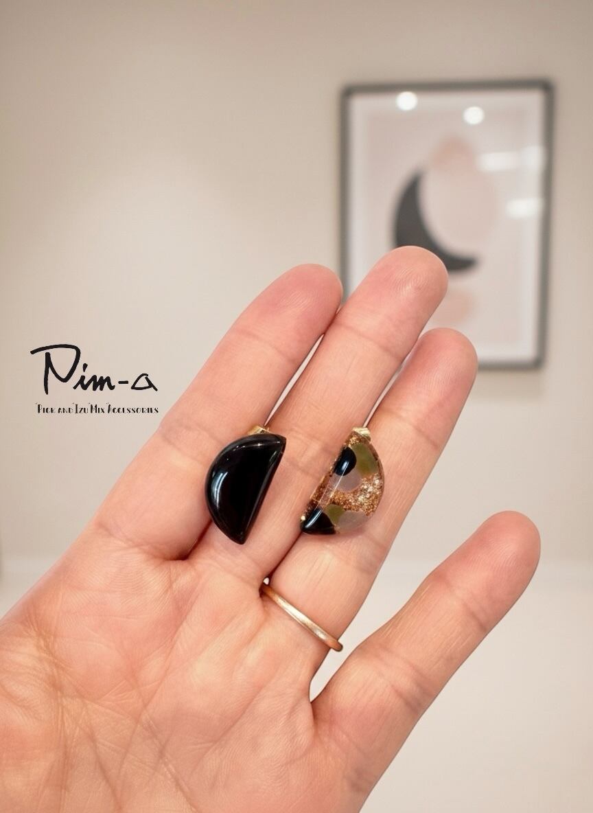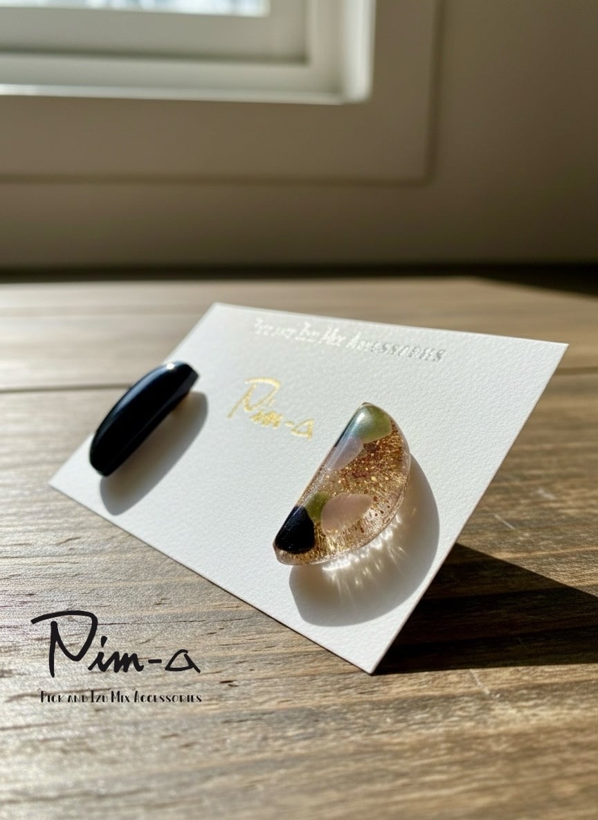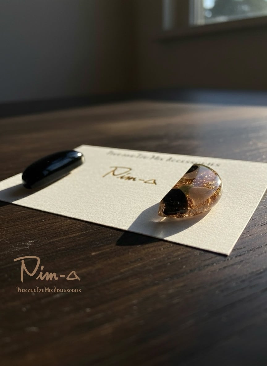 • 対比が生む奥行き: 片方は夜を透かしたようなシアーブラック、もう片方は一筆ずつ描いた躍動感あふれるゴールドのペイントです。