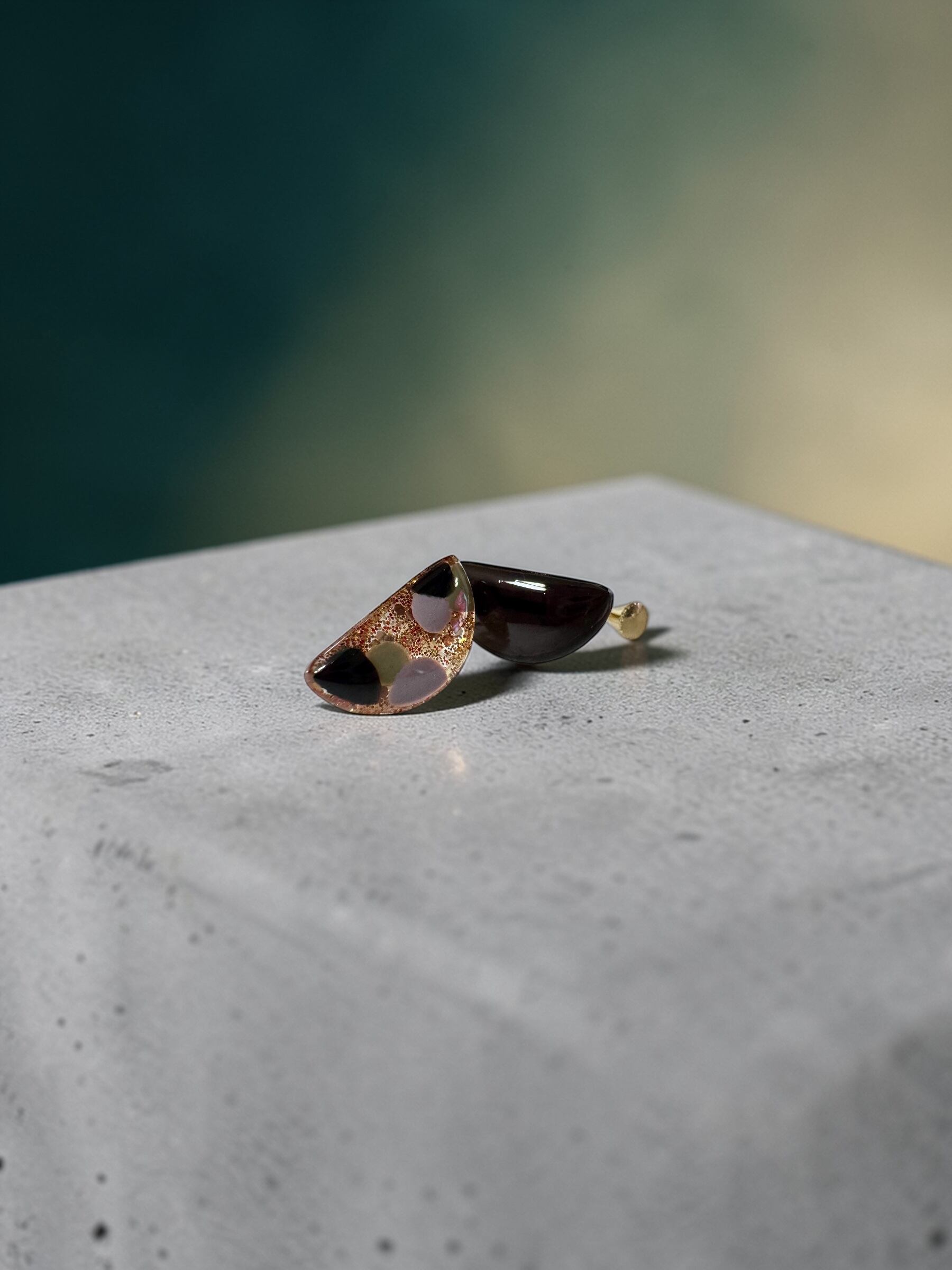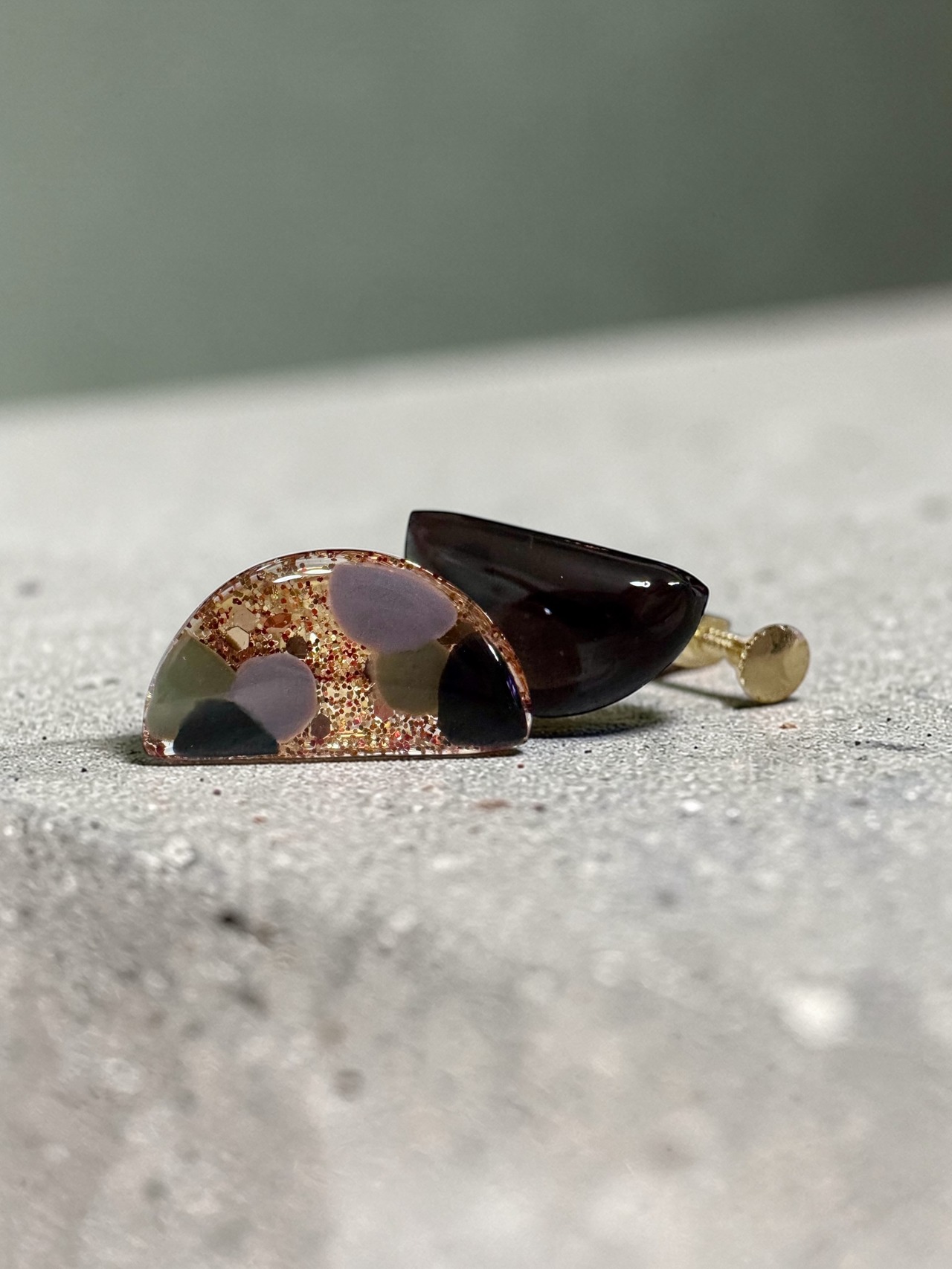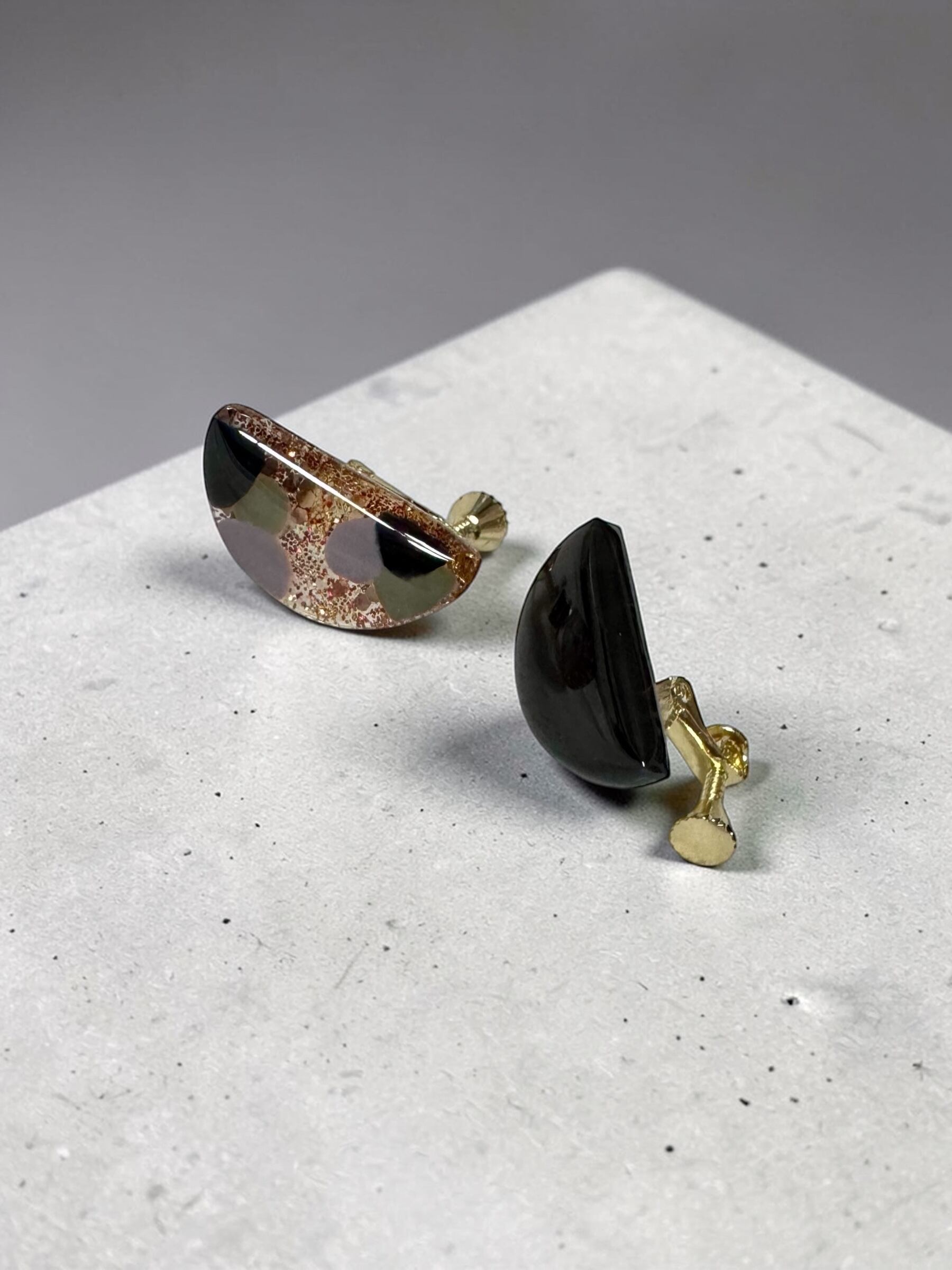 • 対比が生む奥行き: 片方は夜を透かしたようなシアーブラック、もう片方は一筆ずつ描いた躍動感あふれるゴールドのペイントです。