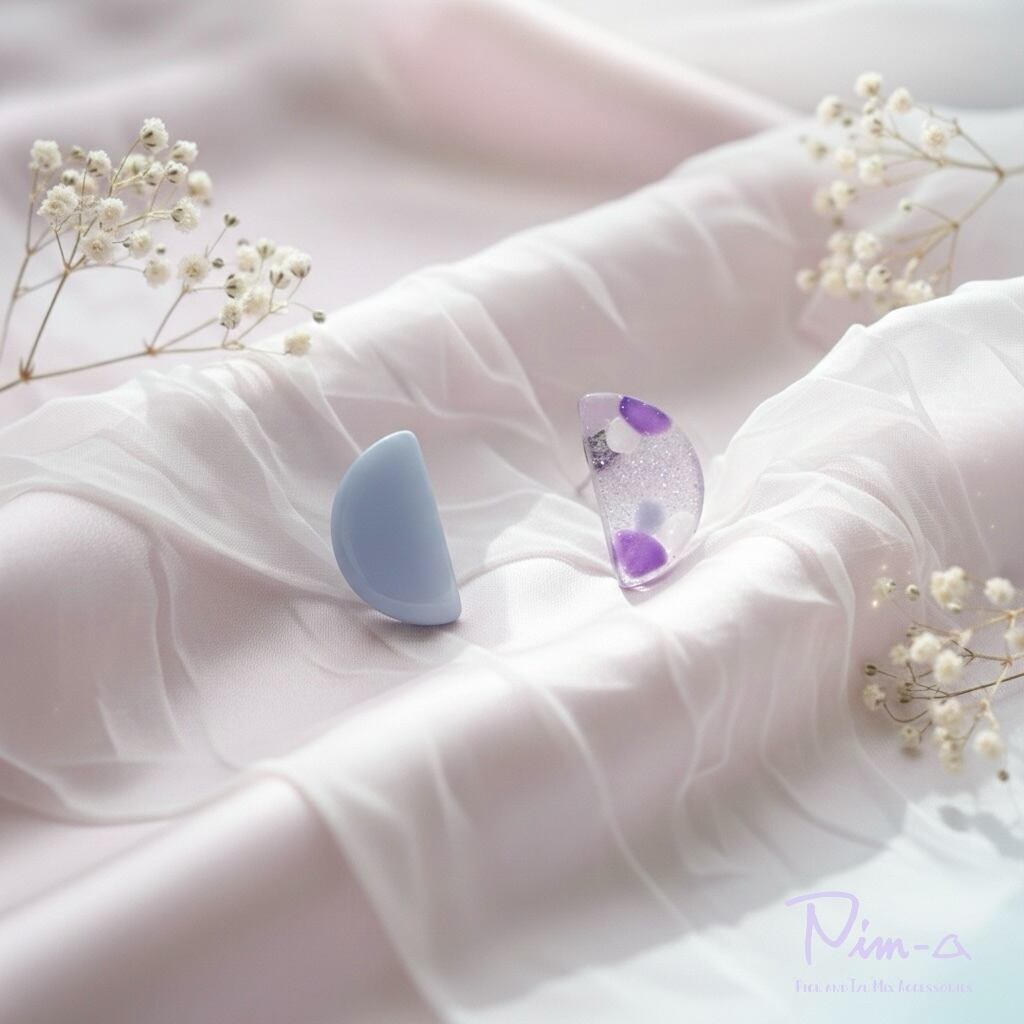 • 重なり合う色彩: 落ち着いたトーンの「くすみブルー」と、華やかな「パープルグリッター」。二つの個性が響き合い、洗練されたラベンダーのイメージを描き出します。