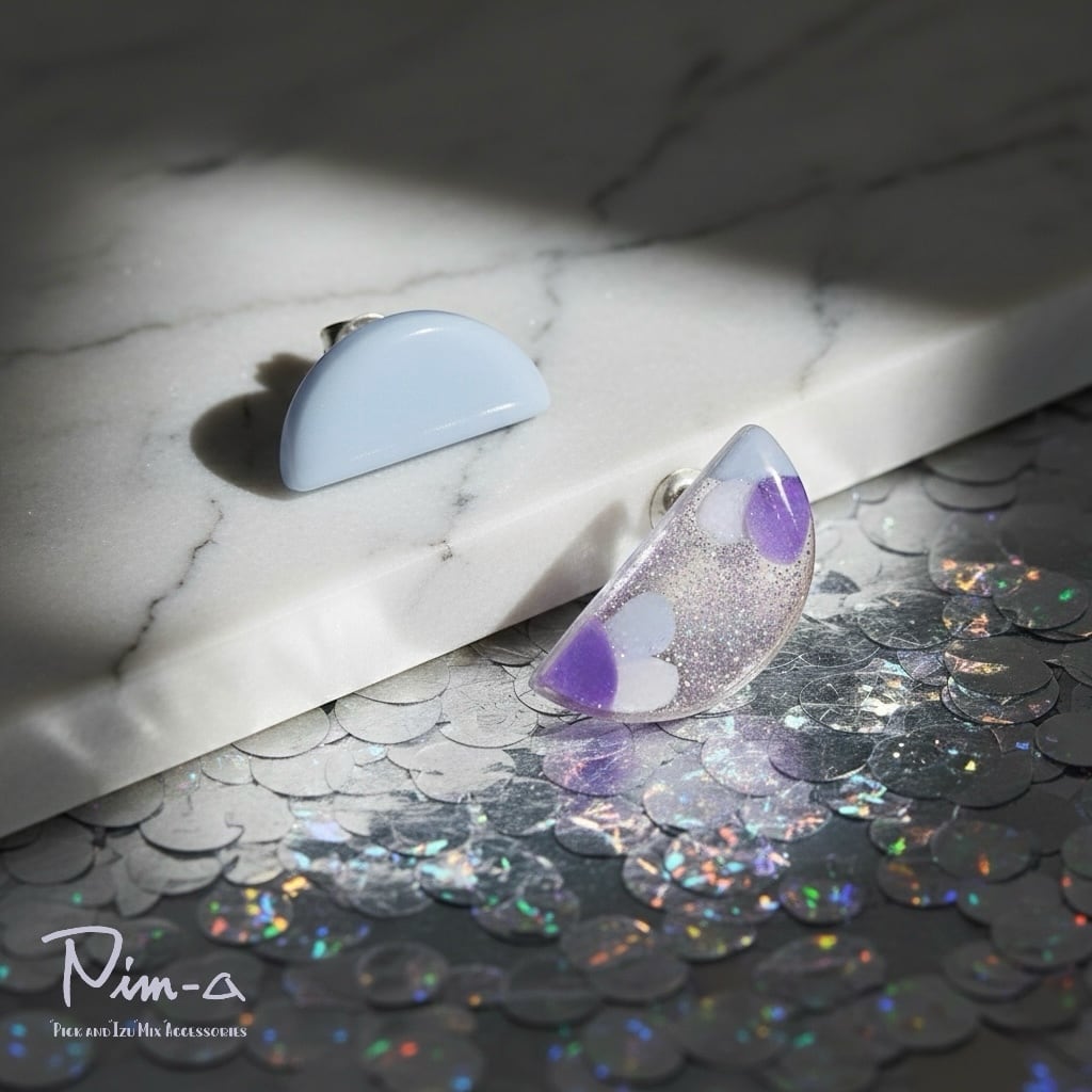 • 春のペールトーン: ホワイトのブラウスや、淡いブルーのデニムスタイルに。くすみブルーが馴染みつつ、パープルの輝きが上品な差し色になります。